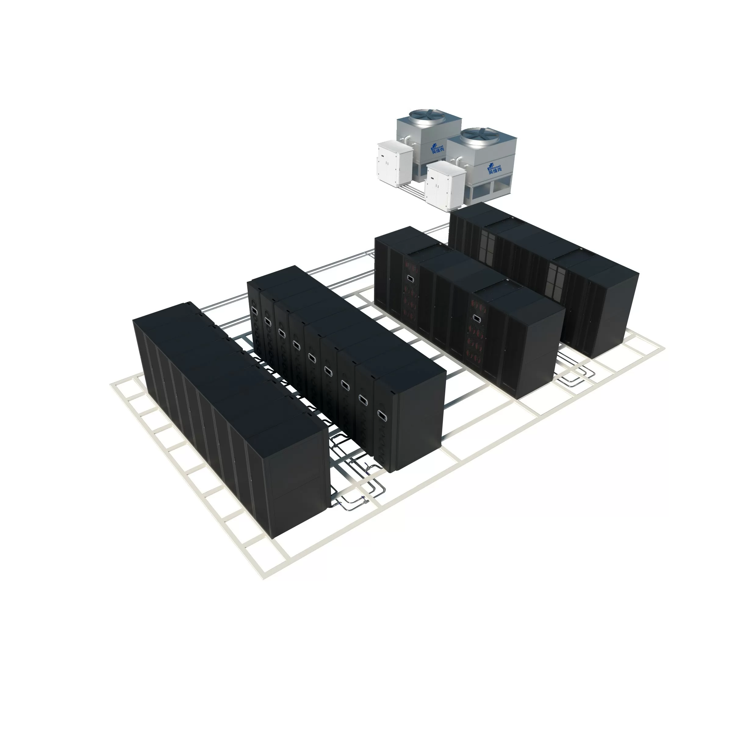 該數據中心應用英維克XMint高效蒸發冷復合多聯空調方案,采用英維克獨有的XFreeCooling高效變頻氣動熱管技術、液泵自然冷卻技術、蒸發冷凝技術、多聯自適應制冷技術等多種先進制冷技術,并結合末端空調設備,能夠根據室外工況變化進行自適應調節,精準控制系統壓力和系統溫度,過渡季節也能實現高效節能,有效提高制冷系統全年能效比,并采用冷媒泄露檢測、增設冗余配置等方式,大大提升了方案可靠性。