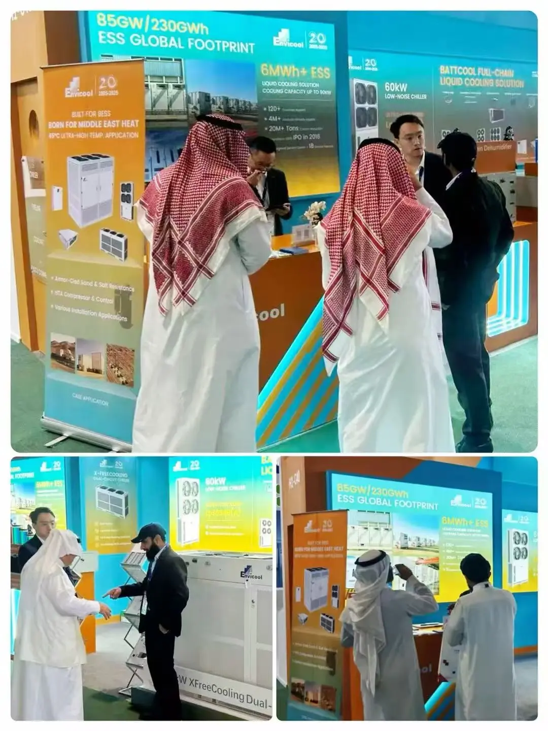 近日,2025沙特太陽能及儲能展上,英維克全球首發中東高溫專用儲能液冷機組,可在65℃環境為儲能系統提供充足的散熱能力,保障儲能系統在極端高溫天氣時實現不限功率運行。